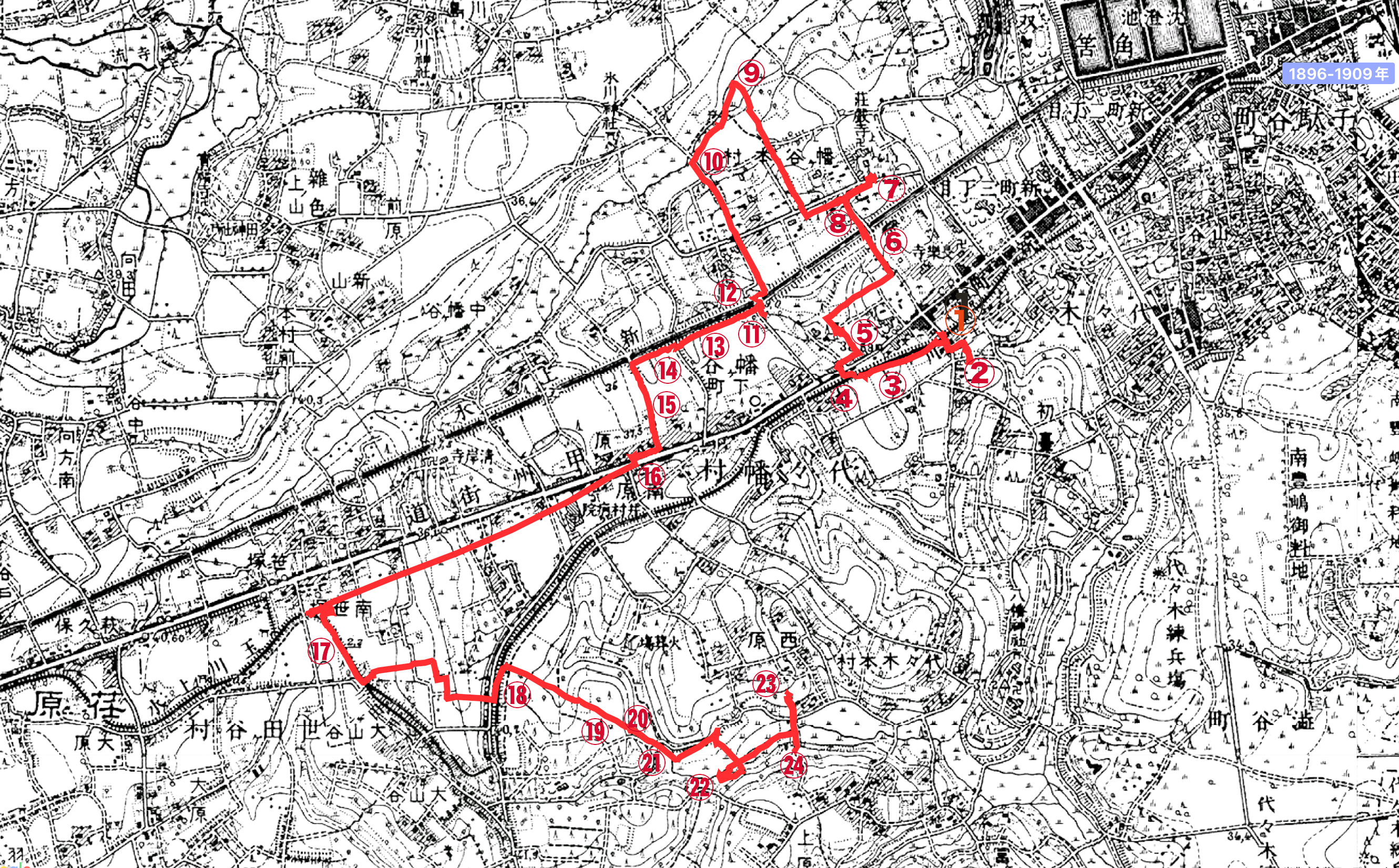 ② 今昔地図(1896年〜1909年、明治29年〜明治42年)