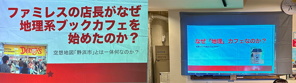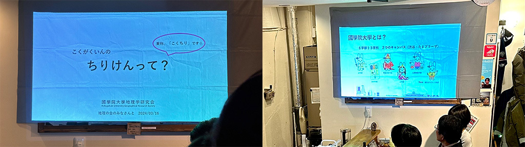 - 國學院大學地理学研究会の設立は2021年の12月というとことで、ちょうどここの「ブックカフェ空想地図」と同じぐらいであります。3年目のサークルになります。3年目のサークルなので、私が今3代目の会長です。創設者の先輩にお聞きしたところ、多くの大学で地理関連のサークルがあることを知って、自分も大学の地理研入ろうと思ったんですけど、國學院大學には地理研がないので作ってしまおうということで作られたそうです。