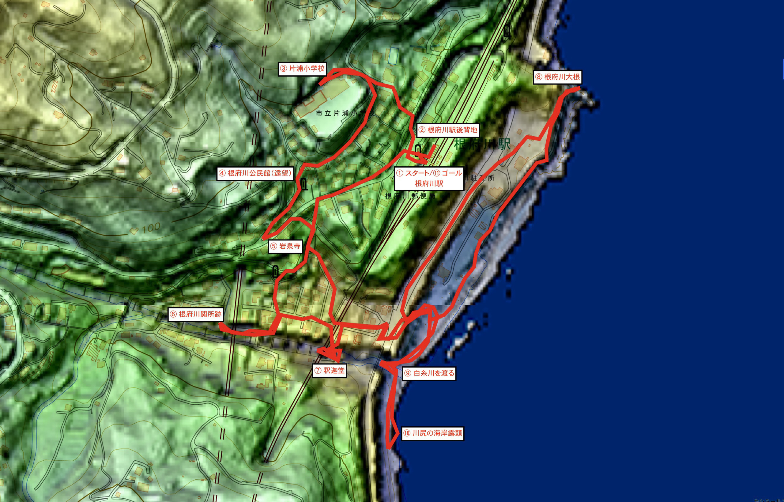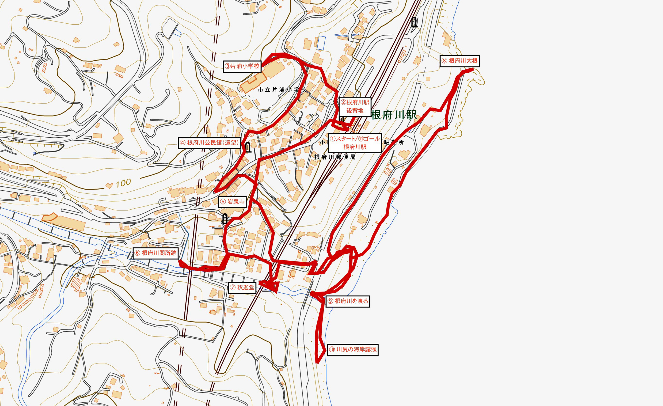 ⑪ゴール:JR東日本東海道線根府川駅