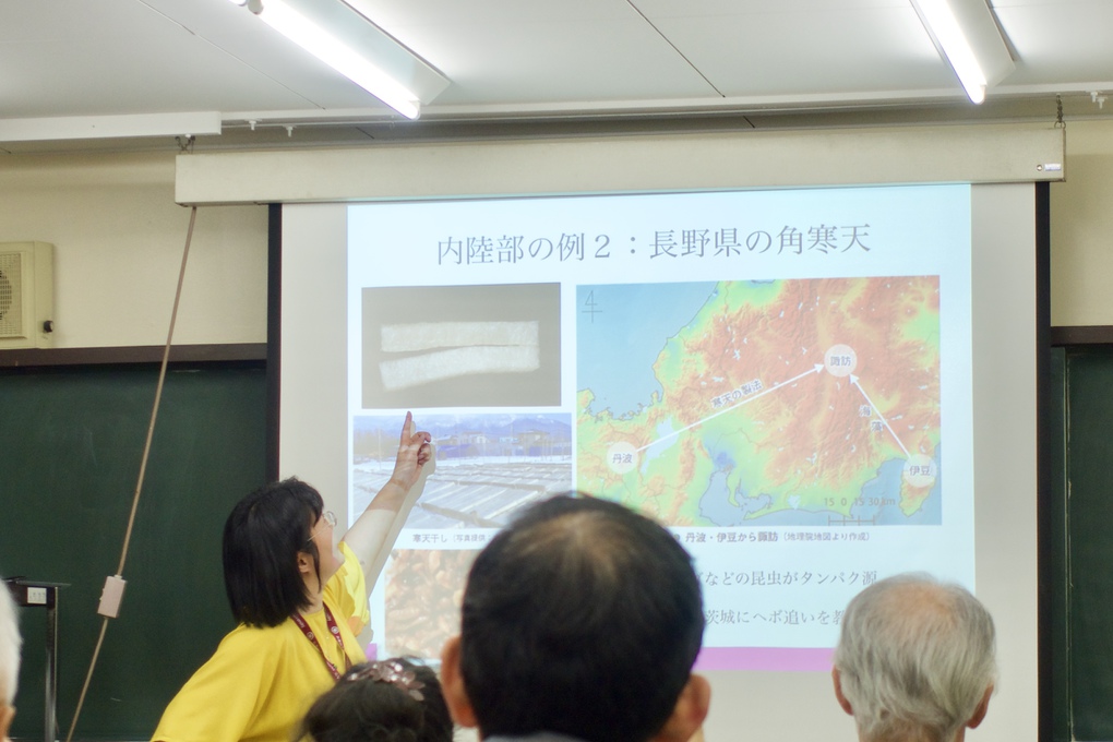 講師は、一般人への地理学のアウトリーチ(社会への発信・啓発活動)として、指導する学生の企画・作成による都内のガイドマップ発行、大学周辺の散策地理グッズ制作、ご自身による子供への地図入門書発行などを行なってきた。今回、一般人にも興味深い「グルメ」をテーマにして、都道府県別の代表的なグルメと地理のつながりを地図などを加えて分かり易く説明した本を出版されたので紹介していただいた。グルメと地理との関係のお話に止まらず、出版に関しての考え方では大衆向けと地理学としての基本姿勢のこだわりについての扱いのむつかしさといった著者ならではのご紹介も有り、たいへん興味深いお話でした。講師は、今後さらに地理のアウトリーチ手法を検討していて、色々なコンテンツ(雑誌、インターネット、テレビなど)の活用や、また、街歩きなどに興味が高い層へのアプローチなども検討して行かれる予定である。